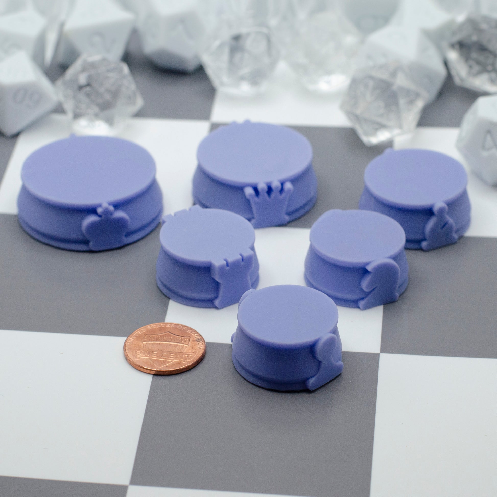 You can create your own chess set out of any miniature or object you have lying around the house with this set of bases! The bases are marked on both front and back sides with a symbol denoting the type, allowing you to easily see what each piece represents.