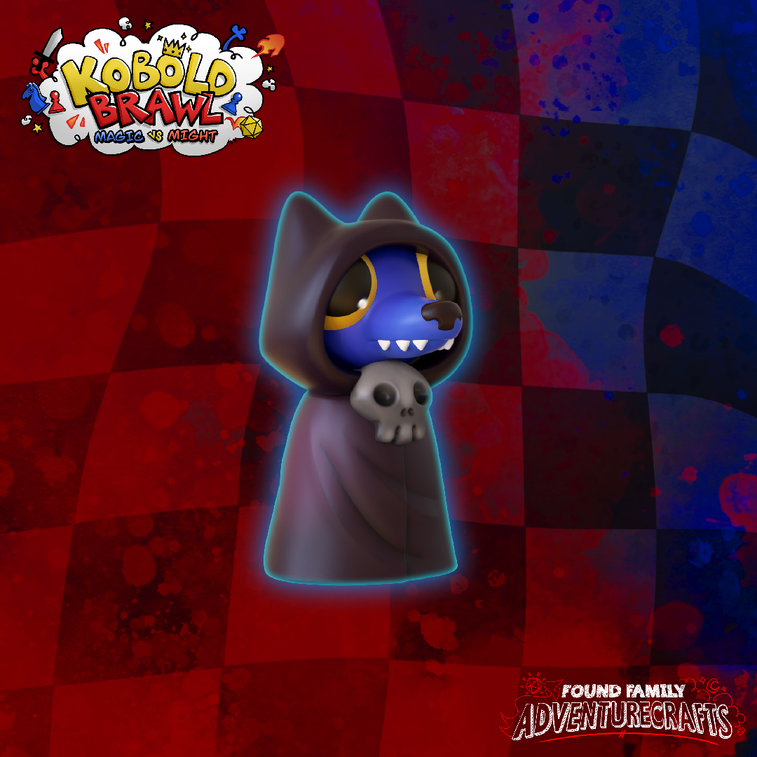 This miniature represents the Magic Team Pawn as a part of Found Family Adventurecrafts’ chess-inspired Kobold Brawl miniatures set! Originally a part of a Kickstarter campaign, each piece was designed with fun and function in mind, serving as quirky tabletop RPG miniatures and a complete set of chess pieces.