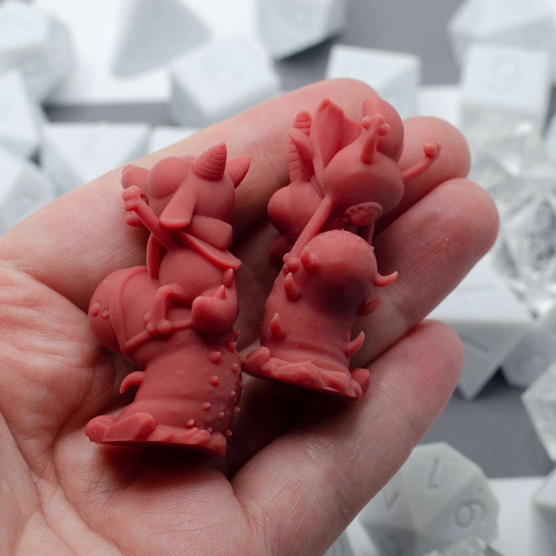 This miniature represents the Might Team Knight as a part of Found Family Adventurecrafts’ chess-inspired Kobold Brawl miniatures set! Originally a part of a Kickstarter campaign, each piece was designed with fun and function in mind, serving as quirky tabletop RPG miniatures and a complete set of chess pieces.