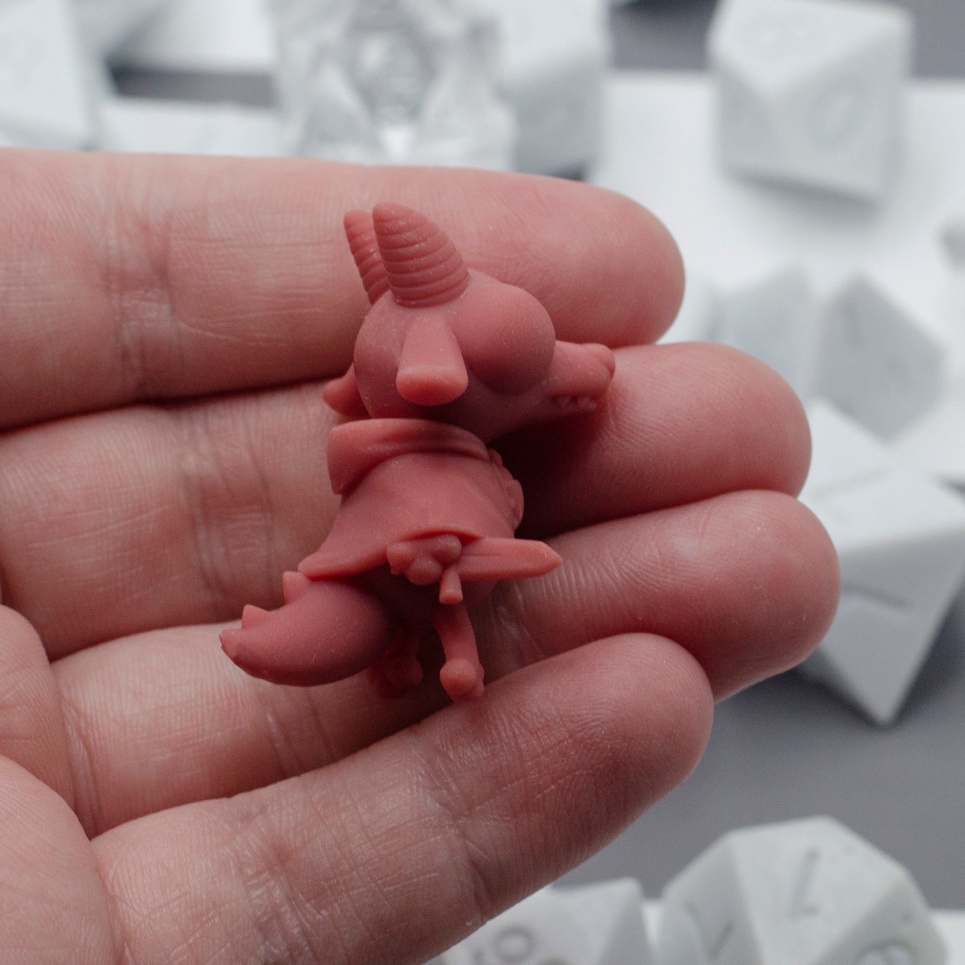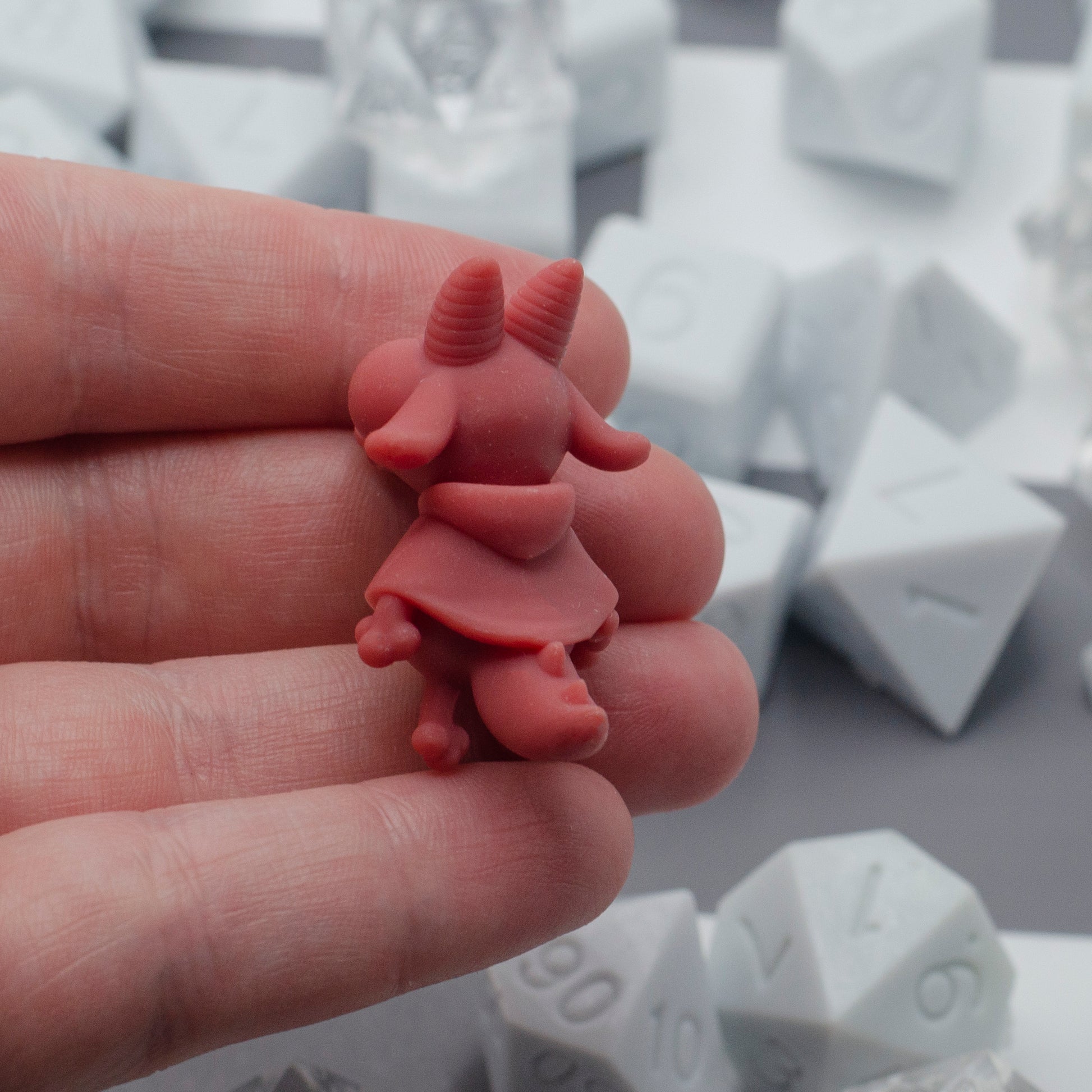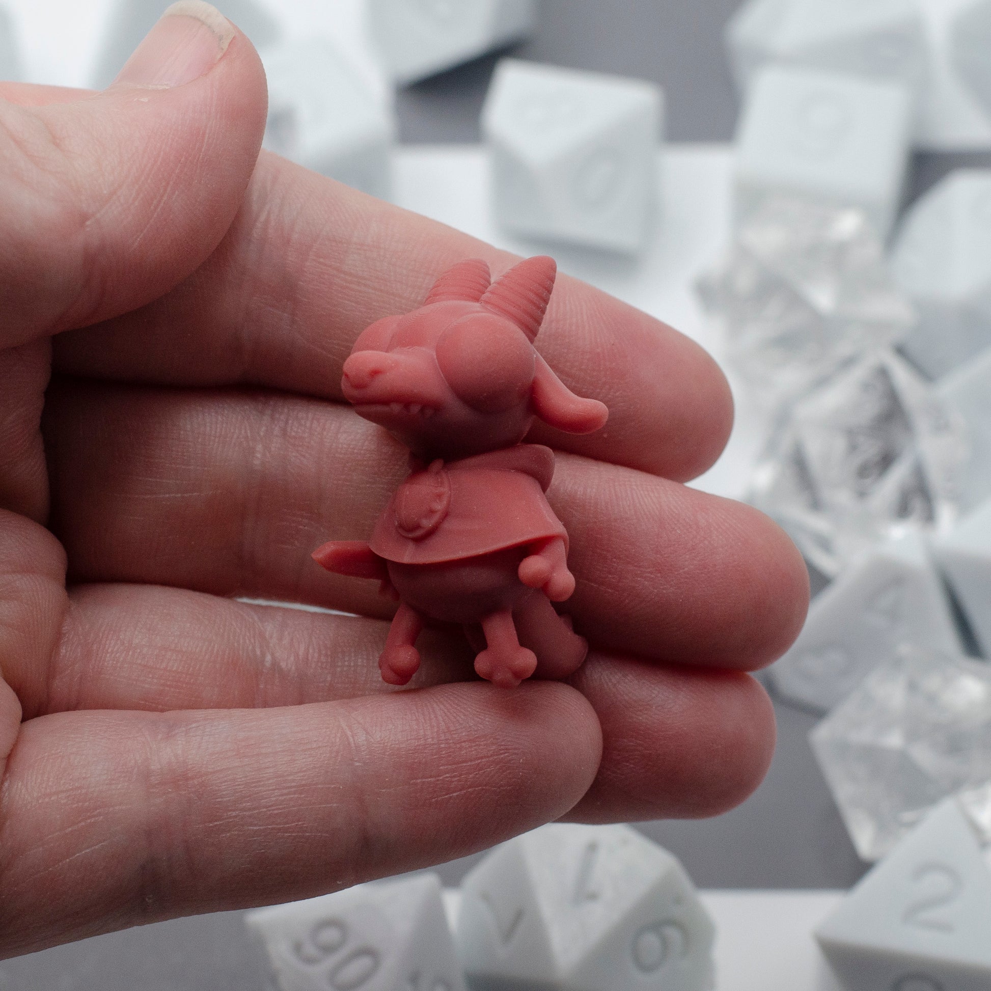 This miniature represents the Might Team Pawn as a part of Found Family Adventurecrafts’ chess-inspired Kobold Brawl miniatures set! Originally a part of a Kickstarter campaign, each piece was designed with fun and function in mind, serving as quirky tabletop RPG miniatures and a complete set of chess pieces.