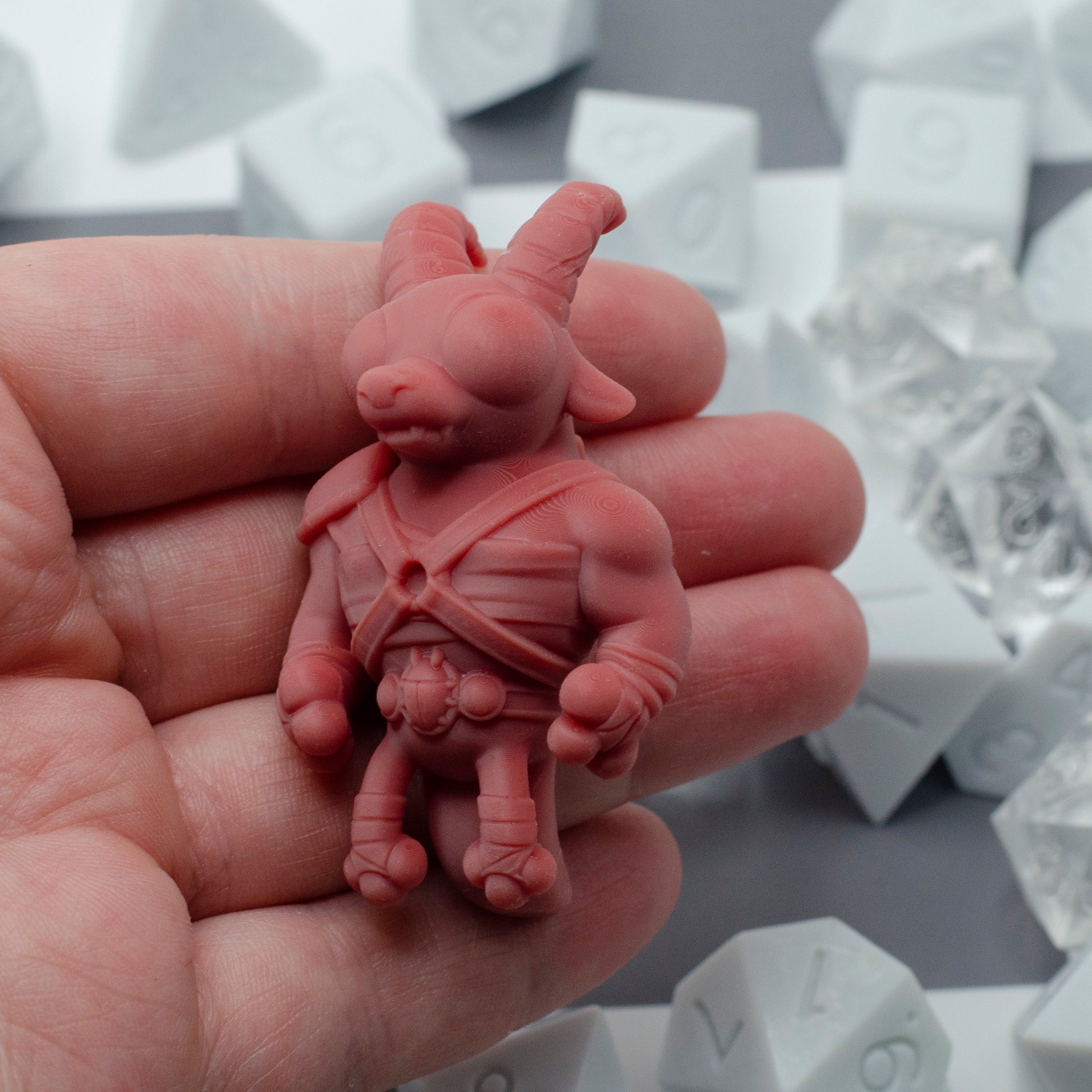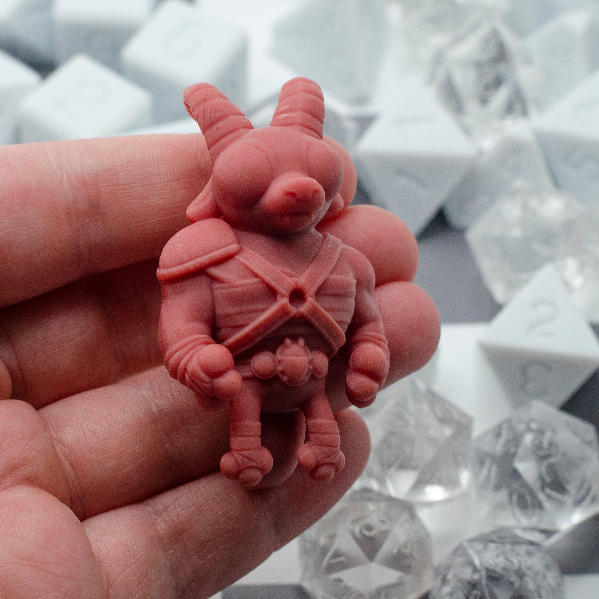 This miniature represents the Might Team Queen as a part of Found Family Adventurecrafts’ chess-inspired Kobold Brawl miniatures set! Originally a part of a Kickstarter campaign, each piece was designed with fun and function in mind, serving as quirky tabletop RPG miniatures and a complete set of chess pieces.